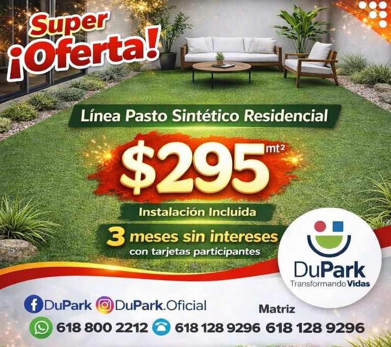 Estamos muy satisfechos con la instalación de pasto sintético realizada por DuPark. El resultado superó nuestras expectativas tanto en estética como en funcionalidad. El área se mantiene en excelentes condiciones, con una imagen limpia y profesional, además de reducir significativamente el mantenimiento. El equipo mostró puntualidad, asesoría clara y una ejecución impecable. Sin duda, recomendamos a DuPark como un proveedor confiable y de alta calidad.